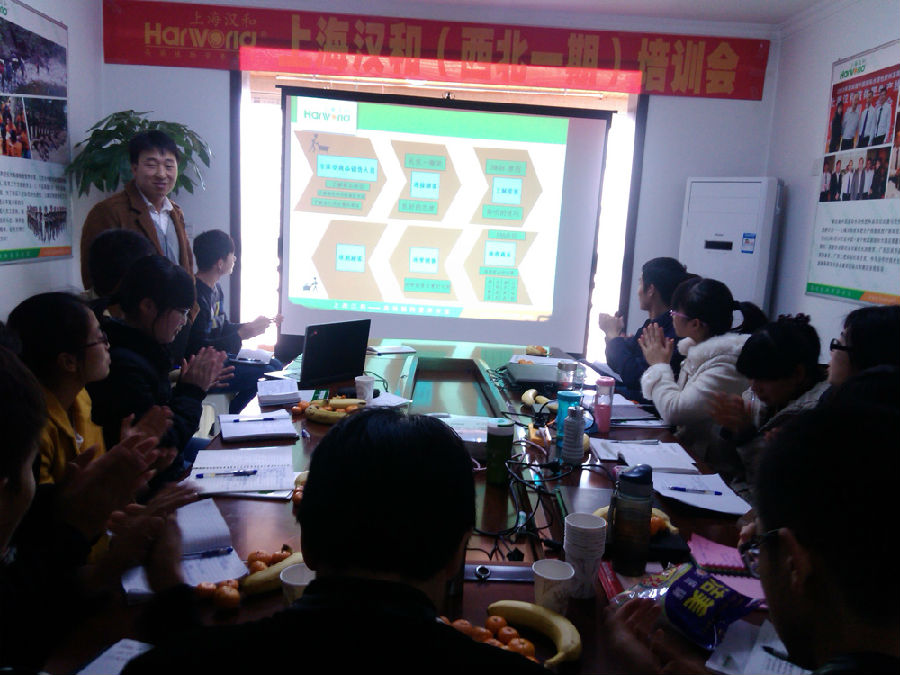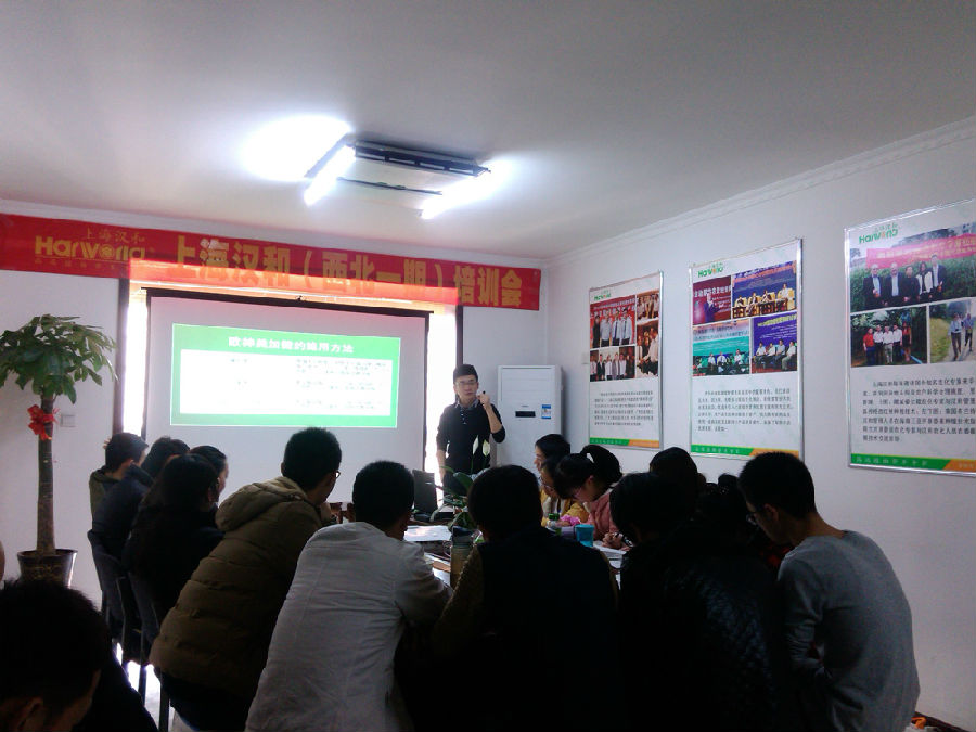 2014年12月中旬,為期2周的陜甘寧大區銷售團隊服務技能級素質提升列培訓活動在上海漢和西安運營中心隆重舉行,漢和生物首席運營官韋敏、生物漢和產品推廣部部長余洲蒞臨西安,并給學員進行細致的培訓指導。漢和生物西北戰略客戶--陜西綠葉農資公司派出部分員工,積極參與了本次活動的各項技能培訓,為共同打造標桿市場而努力。