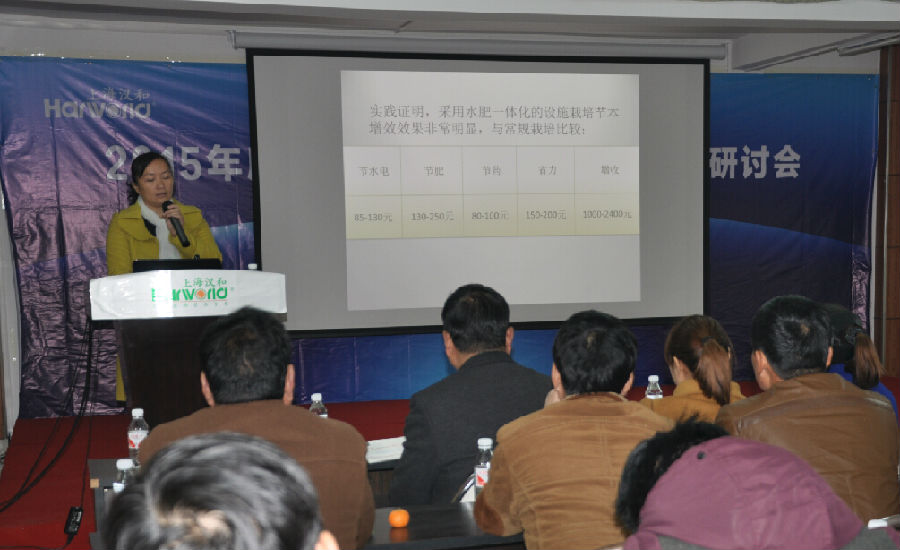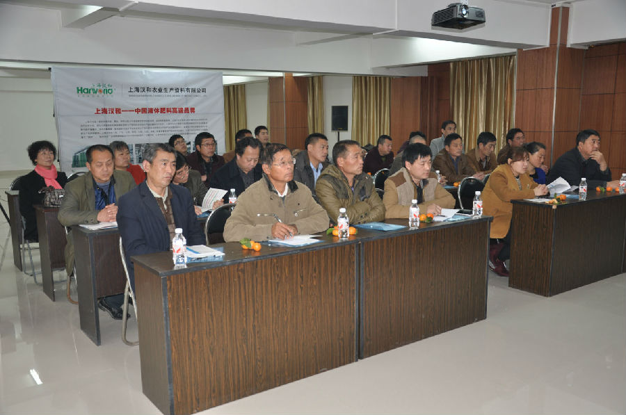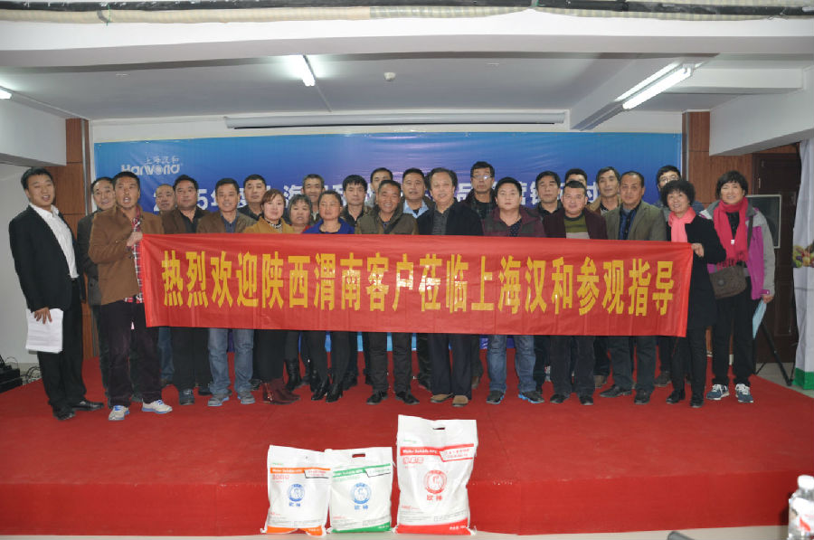 曹博士的講解使得與會客戶對水溶肥市場前景發展信心滿滿,渭南道禾農資曹總在發言中表示感謝上海漢和不斷為大家帶來種植新技術,2015年渭南將大力推廣水肥一體化技術,讓渭南葡萄走在前面,讓渭南果農繼續增收,讓“漢和杯”葡萄大王爭霸賽舉辦得更精彩。