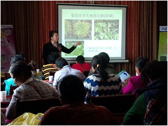 會上,漢和生物農(nóng)化專家孫曉雯老師就該階段葡萄生長的水肥管理和調(diào)控、如何促花保花等內(nèi)容做了全面細(xì)致的講解,近兩小時的講解中農(nóng)民朋友們積極參與互動,六十人的會場座無虛席,精彩的講解贏得陣陣掌聲。