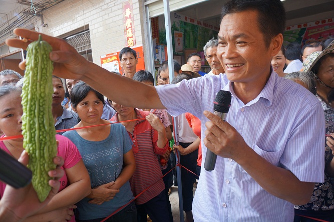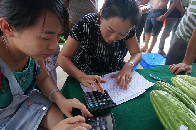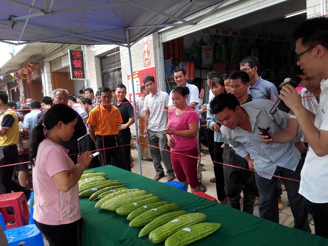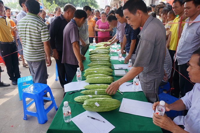 早晨五點多,農戶陸陸續續趕來,拿來自家的苦瓜現場報名參賽。