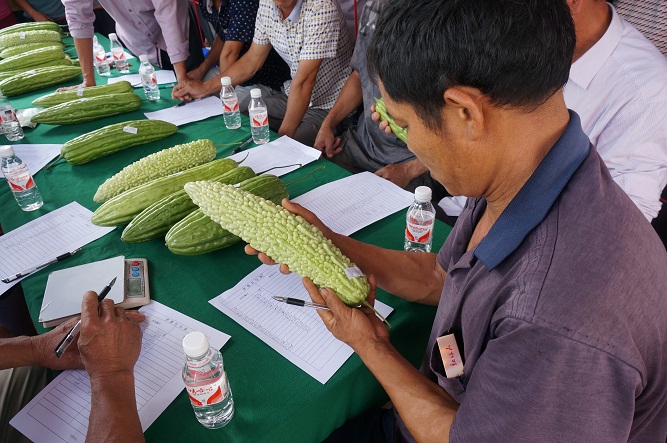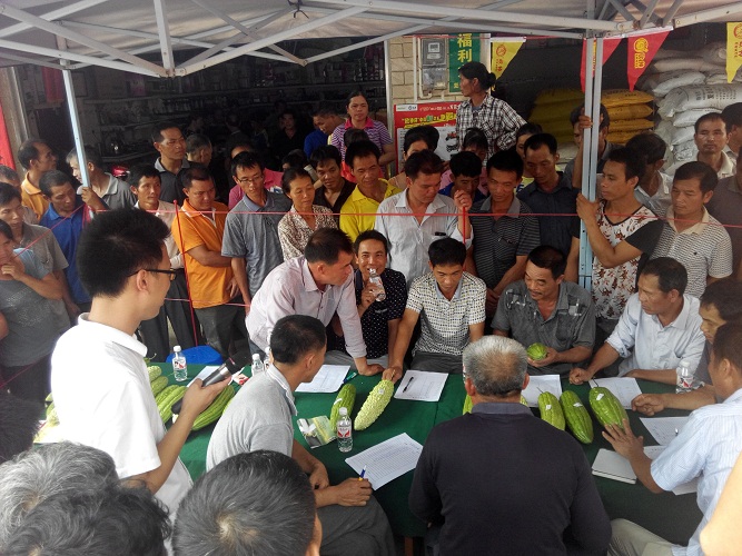 早晨九點,苦瓜參賽報名截止。專家評委團紛紛入場。這些受邀的專家可不是天天坐辦公室研究數據和標點符號的,可都是當地經驗豐富的苦瓜種植老手或能手。