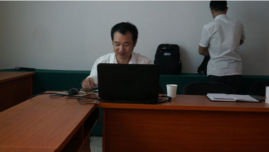 (唐世健老師在為講解《生物有機(jī)肥及微生物菌劑的田間使用技術(shù)》做準(zhǔn)備)