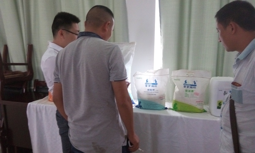 (散會后,一些零售商過來向覃經(jīng)理詳詢產(chǎn)品情況以及請教作物種植管理技巧)