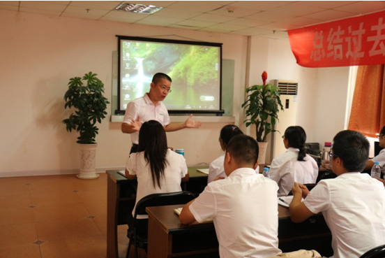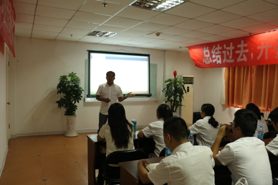 (推廣經理做8月份推廣團隊工作總結,并向大家傳授推廣、銷售技巧。孫經理演講精彩,大家細心聽講)