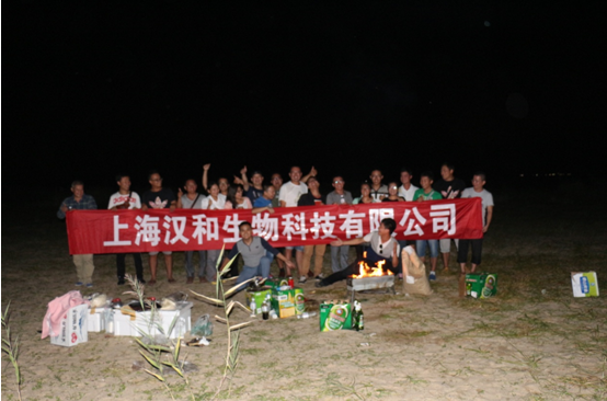 (漢和生物華北團隊組織集體活動——沙灘燒烤留影。)