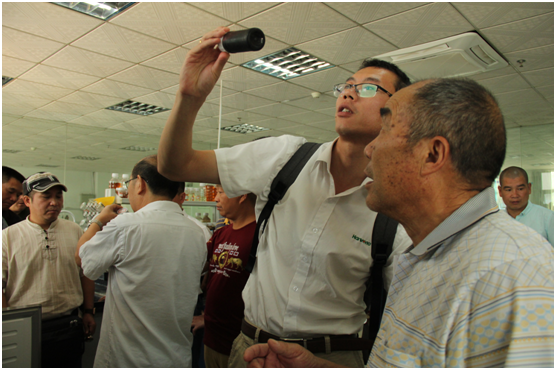 (通過研發(fā)老師的講解,客戶對(duì)產(chǎn)品研發(fā)的基礎(chǔ)流程有了一定了解。漢和產(chǎn)品的研發(fā)要經(jīng)過多次反復(fù)試驗(yàn),配方必須經(jīng)過負(fù)二十?dāng)z氏度的冷儲(chǔ)和五十?dāng)z氏度的熱儲(chǔ)試驗(yàn),確保冷儲(chǔ)不結(jié)晶、熱儲(chǔ)不沉淀分層,且添加的有機(jī)營養(yǎng)成分穩(wěn)定。配方穩(wěn)定后,通過大量試驗(yàn)示范驗(yàn)證效果最佳,產(chǎn)品才會(huì)量產(chǎn)推向市場。 此外,研發(fā)人員對(duì)公司新近研發(fā)的幾款處于領(lǐng)先地位的懸浮型肥料也做了介紹,客戶表現(xiàn)出濃厚興趣。)