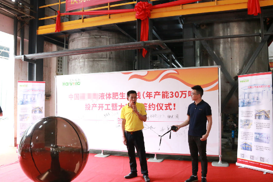 開機儀式正式開始,眾人按動水晶球,音樂伴隨著禮花應聲響起,漢和30萬噸級液體肥生產線順利開工!