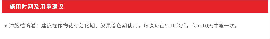 - 產品含量:P2O5 ...........................................50% K2O.............................................33% B..............................................0.15% EDTA-Zn....................................0.1% “美加倍”增效技術